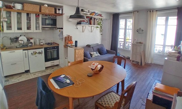 It`s an old Parisian apartment with wooden parquet. It is confortable and well equiped. It has 5 sunny windows. 3rd floor with no elevator.