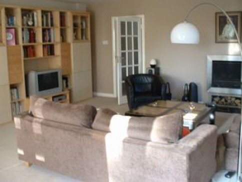 Our house is in a good neighbourhood with mature houses and trees. At the rear there is a sun deck overlooking rear garden. Parking for cars on drive. BBQ and everything for outdoor entertaining etc. The living space is very modern and spacious with hole in the wall open fire, two large sofas and a baby grand piano. Two double doors lead to private garden with art studio. The house is very comfortable and stylish. We have 2 sound systems, satelite TV, DVD and video. All rooms have TV. 4 in all.