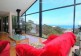 On the world famous Great Ocean Road, this modern holiday house has panoramic views of the ocean and surrounding hills and forest.