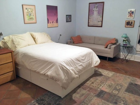 Two large bedrooms with queen-sized beds, plus a fold-out couch in the living room and another in the second bedroom. Spacious eat-in kitchen. Working fireplace.