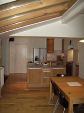 Our house has 4 bedrooms plus a spare room/study and 2 bathrooms. Our open plan kitchen/dining room is modern and spacious and opens onto the patio for outdoor eating. The garden has great views over the valley and swings and a trampoline for children.