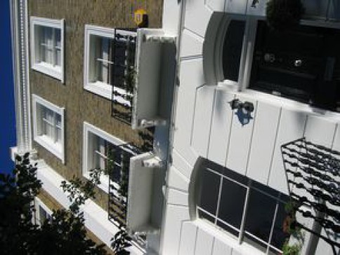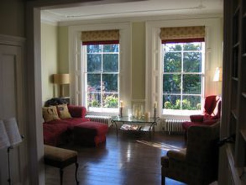 The house is set back from a quiet leafy avenue, on four storeys with front and back (60ft) gardens. Black granite kitchen, dining room, glass-walled living room with HD cinema, three spacious bedrooms and a fourth (our baby's) room, marble bathrooms, high-ceilinged drawing room, music room with grand piano, study with wireless broadband, guest kitchen/washroom and heated stone floors.