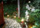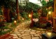 Private scenographic garden around a rocky fountain and pond. The ultimate all-in-one home-garden concept. Post modern furniture and design, in a unique habitat.