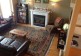 Living Room: Fireplace, bookshelves, sofa and loveseat