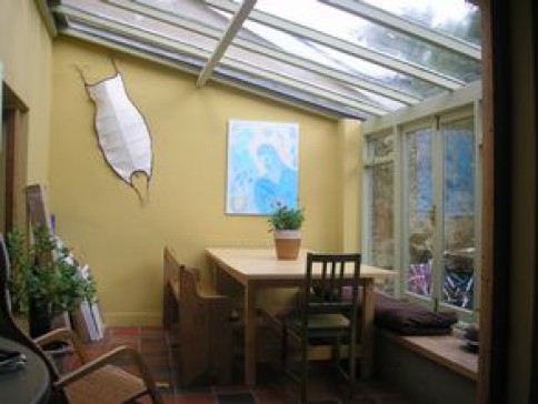 We live in a terraced cottage, which has quarry tile floors, exposed beams, an aga and log burner. It is a relaxed, cosy and comfortable house within walking distance of the shops, a brand new swimming pool and library. It has a 150 foot garden with patio, mature fruit trees, lawn, flower, herb and vegetable gardens.
