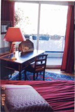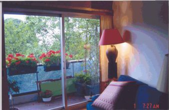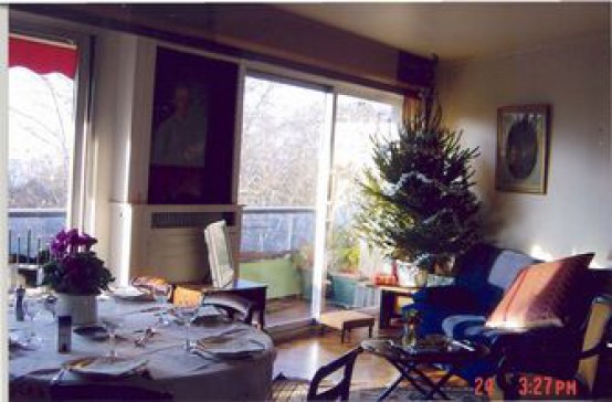 The apartment is located in the highest part of Paris overlooking the well known "Parc des Buttes Chaumont". Once in the apartment you can see the trees from the park and the numerous flowers from the large balcony that runs all along the apartment. The main room is very light and spacious and opens by a sliding glass door to the balcony, there is a sofa which can be converted in a confortable bed for 2 persons. The bedroom has a double bed and a sliding door opening to the balcony.