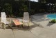 Our home also features a very relaxing backyard complete with a saltwater pool and spa, a fire pit, and many different seating areas. It's lovely to spend the morning having your coffee on the back porch while listening to some jazz music on our outdoor speakers. Or barbecuing and eating lunch at our picnic table under a vintage aluminum umbrella; you'll feel a little bit like you've been transported to a backyard barbecue where Frank Sinatra might just show up and make everyone a highball.