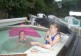 Sunny, friendly house, large living room with doors onto patio, kitchen and family room with flat screen TV, DVD etc.Three bedrooms, 2 1/2 baths. Lots of books, games, doors onto patio. Two picnic tables and lots of chairs, beautiful garden, large pool and hot tub.
