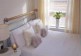 Contemporary styled, modern, spacious city centre apartment. French doors in the living room lead out to a private enclosed terrace with table and chairs.