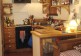 The house has three large bedrooms; two of which have en suite shower rooms, the other has an adjoining bathroom. The ground floor has an open plan kitchen & sitting room, complete with a traditional sleigh bed! The house is full of rustic charm, with lots of larch beams & parquet floors covered with kelims.