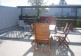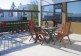 The living room opens to a big terrace with furniture and barbecue, and steps down to the garden.