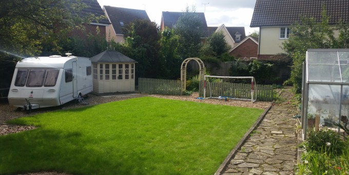 Outside we have a patio with seating, gas-fired barbeque, summer house, caravan (for children to play in), large grassed play area and an organic fruit & veg garden - feel free to help yourself!