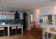 Contemporary open kitchen, wooden floors, lovely tiled bathroom with bath and shower.
