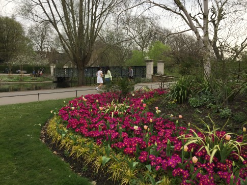 Beautiful Regents Park with lakes, flower beds, open air theatre, cafes and tennis courts, 3 minutes walk away.