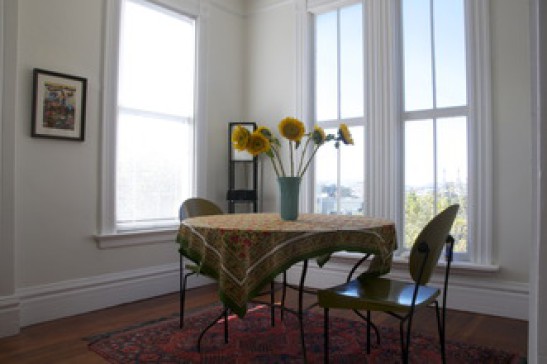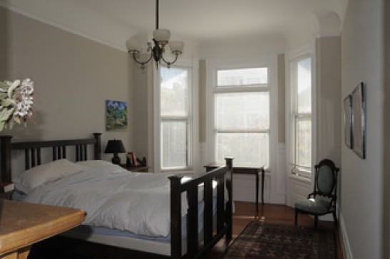 Classic and beautiful Victorian apartment with original detail, many windows and filled with light, hardwood floors, and modern amenities. Located on top floor with view of cathedral and Golden Gate Bridge. One full bedroom and a second bedroom that can be used as an office or work space. Second bedroom with inflatable mattress. Extremely desirable neighborhood within walking distance of city parks, shopping, and weekly farmer's market. One block from Lycee Francais. Accessible to all tourist destinations by public transit. One-car garage available if needed. Prime hiking opportunities in National Park setting located within 15 minutes of home. For more on neighborhood, see: http://www.sfgate.com/neighborhoods/sf/colevalley/