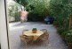 We have a gated driveway, and large cobblestoned yard with perimeter garden.