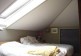 The attic/loft space is modern, sunny and open plan. It has spaces for sleeping, TV viewing, eating, a small kitchen and bathroom.