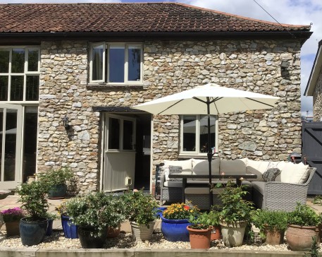 Comfortable spacious converted barn in small East Devon village. Large sunny lounge and big eat in family kitchen. One large master bedroom and two smaller doubles, (one is downstairs). Also double sofa bed on mezzanine landing.