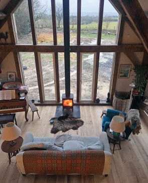 New build timber framed house with amazing views out over North Devon and the beautiful Taw and Mole river valleys. House has been architect designed and has beautiful spaces and a lovely feel (we're biased). It's also warm and comfortable and well equipped for being cosy with log burner in winter or enjoying the outside in summer. Accessed through its own wood, guests can enjoy the light, the stunning setting and garden plus beautiful walks on footpaths from the house and further afield. Wild coast, Exmoor National Park, choice of country pubs and award-winning country market (South Molton) all within easy reach.
