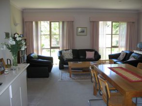 Our house is the front one of two on a large block. We have a small garden at the front and a terrace on one side. The house is modern, with large windows, lots of light and a nice outlook from all rooms. There are two double bedrooms and a third bedromm used as a study.