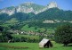 In the French Alps cloe to Annecy and Aix les Bains, Our home is situated in a small farming village in the center of Massif des Bauges Regional Park. The four storey house is surrounded by beautiful mountain peaks. It was built by the family in 1997 and it has a chalet appearance inside and out. In the basement there is a garage, a cellar and a laundry room. On the first floor there are two bedroooms with double beds, two half bathrooms and a small office. The second floor has an open plan kitchen/ dining/ living room area, a 20 square metre balcony and a bathroom with shower. On the top level there are two bedrooms, a full bathroom and a family room with a tv and a computer. The many windows in the house have great views of the surrounding mountains and pastures. Outside there are two small gardens.