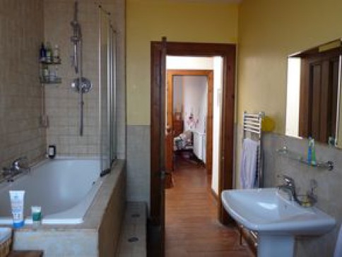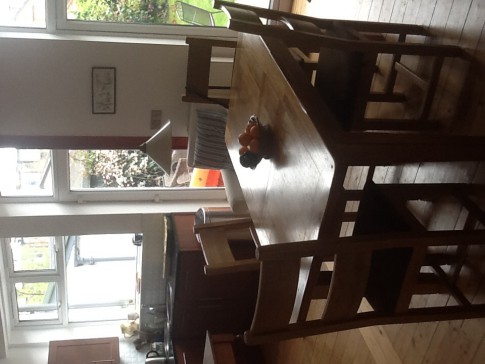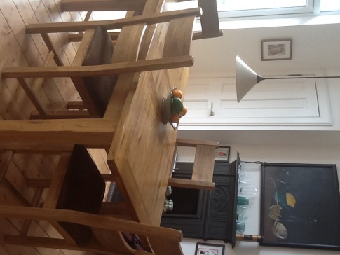 On the ground floor there is a bay-windowed lounge with open fire; large kitchen/dining room, including large dining table and piano; cloakroom with toilet and hand basin. Upstairs there are 2 double bedrooms, one twin bedroom and a bathroom (bath/shower). (Apologies for the upside down photos, I can't seem to get them to rotate!).
