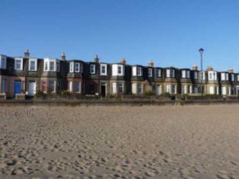 We live in a lovely victorian terraced house 4 miles east of the city centre in Joppa/Portobello, Edinburgh's seaside town. Our house is situated right on the promenade with a sandy beach a few feet away. There is no traffic, just the sound of the sea!