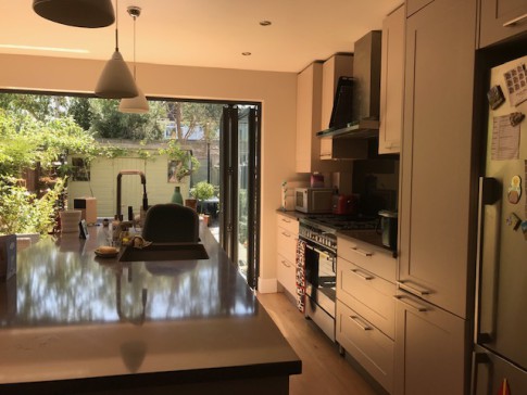 Large, attractive, recently renovated home, with living room, (tv/video/DVD),open plan kitchen/dining/family room with doors to garden,main bedroom with ensuite and king size bed, two further bedrooms & office with computer/internet/colour printer. Family bathroom with shower and bath. Plenty of toys/books/DVDs! Off street parking.