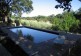 The house is on a bluff with beautiful views of a park, the neighboring farmer's vineyard and olive orchard, and our swimming pool and garden. The large living room and country kitchen overlook the garden and park. The garden includes an 80 square meter lawn suitable for badminton, many oak trees, several orange trees, and a vegetable garden. The salt water pool has a motorized cover and is 14 feet by 34 feet. The size of our lot is about 2000 square meters. The part of the park next to our house is primarily riparian oak forest so although we live in a suburban setting the impression from the back terrace and the back of the house is of being in the country.