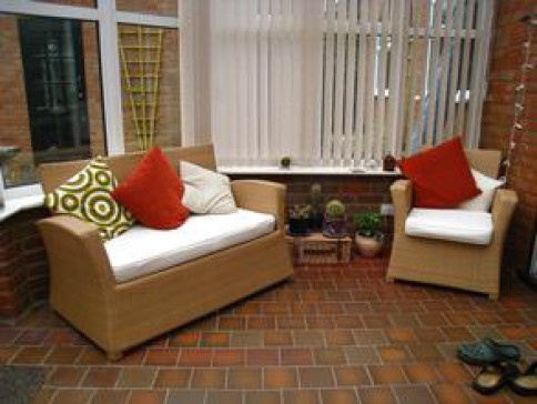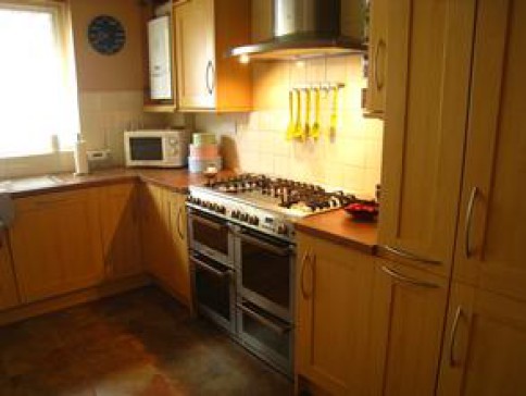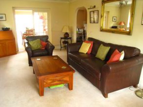 We have a large open plan kitchen and sitting room, with a separate dining room and conservatory. One of our three double bedrooms is downstairs and has a large patio door that opens onto the garden. The entrance to this bedroom is behind a bookcase!!!!