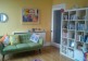 Brightly painted and new well-equipped large kitchen and living room with Sky TV and funky sofas.