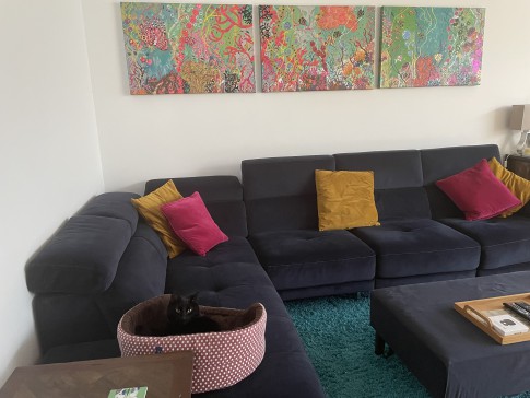 30 mins from central London, Harpenden mixes English charm with a good variety of shops, cafes, pubs and restaurants. Our modern 4 bedroom family home is in a leafy area next to a nature reserve with a river, and children’s play area.