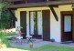 Outside a spacious terrace patio with table and chairs. The lawn borders with the big garden of the property.