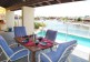 Upstairs has two bedrooms, one being the master with a balcony overlooking the pool and canal, with an en-suite. Plus a second bedroom set up with a QB and SB, with built in robes. Also a small office/study. Downstairs another two bedrooms each with a QB, a full bathroom with spa bath and shower, separate WC all off of the lobby. Also on the ground floor is the main living area, there is a lounge, fully equipped kitchen, double fridge/freezer with in door ice and water, sitting room and dining room all facing the canal and 10 metre pool. All these have glass sliding doors that allow a nice airflow through the house. There is a covered outdoor area on the canal side and another one at the front in an area with stags and other ferns. There are two BBQ's, the smaller being a gas fired Weber Q which we use mostly and cook majority of our meals on it. There is also another larger built-in gas fired BBQ should anything bigger be needed for entertaining.