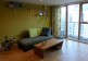 The living room leads onto a balcony which overlooks a pond and has views to the park at the side.
