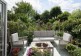 South facing garden with sofa and chairs, fenced off garden pond flower and vegetable garden.