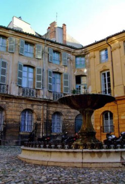 At one time, Cours Mirabeau had 4 fountains along its route (3 of which remain) : Fontaine des Chevaux Marins (Fountain of the Seahorses), which was removed in 1778 to make way for new roadways, Fontaine des Neufs Canons (Fountain of Nine Cannons) built in 1691, served for a time as a watering trough for livestock, Fontaine d`Eau Chaude (Fountain of Hot Water) from 1668 is so named for the fountain`s thermal water sourced from the hot springs of Bagniers, and whose nickname ‘moussue’ refers to the moss that covers the fountain, and Fontaine de Roi Renee (Fountain of King Renee), built between 1820-1823 in honor of King Renee of Anjou who was a defender of the arts and is credited with bringing the Muscat grape to Provence.
