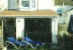 On the ground floor is a large sitting room with an open fireplace and french windows leading onto a side patio with a small table and two chairs.