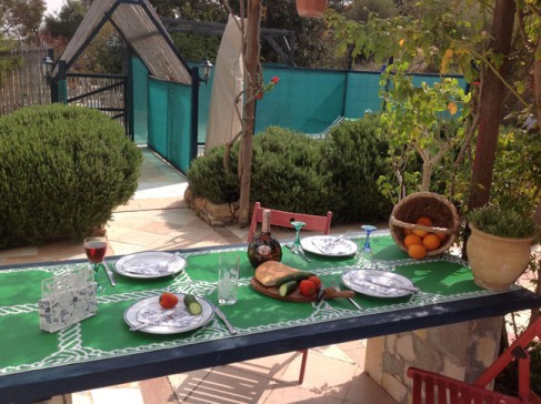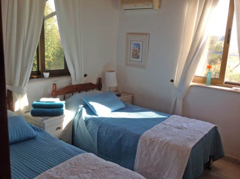 Our accommodation comprises a large, airy living room, large family kitchen with eating area, a dining room and the sleeping accommodation available is one twin/ double and a double with en-suite facilities. There is a single bedroom, currently used as a study which could be made available. There is a Z-bed that could accommodate an extra guest. The main bathroom has an over the bath shower. Air conditioning and heating available in all rooms. Outside there are paved terraces with shady pergolas and tables for al fresco meals. There is a dedicated BBQ area. We have a large garden with mature trees and indigenous planting. A variety of herbs in pots plus a profusion of rosemary. Scented Jasmine, lavender add to the ambience. There is a large orchard with a variety of citrus and fruit trees and a grapevine. Much of the garden is paved and divided into smaller areas of interest. One area is dedicated to sun bathing with beds and an umbrella for shade. There is a single wide step to the front porch. Should wheel chair access be required, a ramp could be arranged. The interior of the house is flat and doors would allow for regular sized wheelchairs. There is lots of room for parking. A hire car would be necessary to explore the area and enjoy the local beaches, tavernas, historic sites and to explore the mountain villages which hold festivals throughout the year.