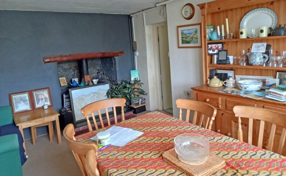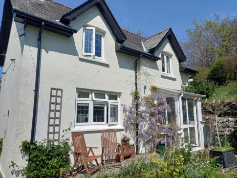 The house is awaiting renovation, but is in a fabulous spot with stunning views and amazing peace, quiet and birdlife. It has; a cosy log burner in the lounge; a small kitchen and dining room and small conservatory and gardens on three levels. Garage for small car and 1/2 parking places.