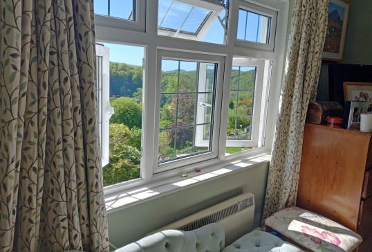 3 large private gardens with stunning far reaching rural views towards the sea at Lynmouth and Exmoor. A high sunny terrace with beautiful views across the woodlands and East Lyn Valley to enjoy whilst you eat your breakfast or BBQ.