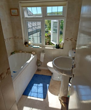 The house has stairs and uneven floors in places. The garden has steep banks and sometimes slippery paths and steep steps (though there is a grassy ramp to access).