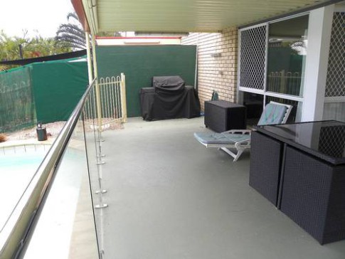Outdoors has a large entertaining area under cover