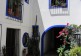 The house has two storeys and a sunny patio full of plants and cactuses.