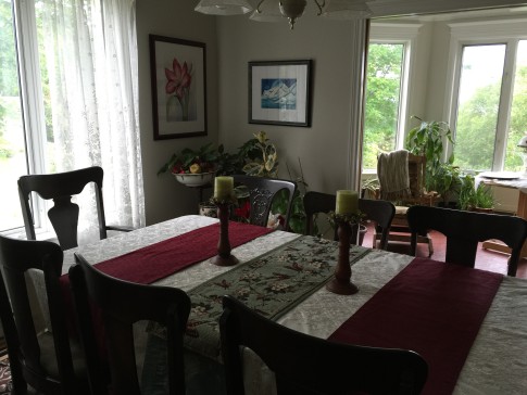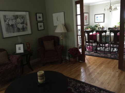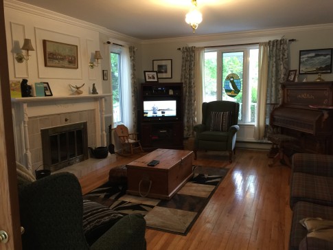 On the main floor there is a fully equipped kitchen which adjoins a large family room with a solid fuel fireplace. As well, our dining room seats 8 comfortably. It adjoins a lovely sunroom and living room. There is a 1/2 bathroom on this floor, off the center hall. The laundry room is on the main floor as well.