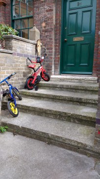 We live in one of the buildings in the beautifully converted 19th century Bryant and May matchbox factory now called Bow Quarter ( www.thebowquarter.co.uk ). The cottage was originally the Director's home, which is now decided into five flats. Our flat is on the first floor and has been comfortably renovated to comply with modern standards, including dishwasher, washer and dryer. It consists of a kitchen, living room, bathroom with shower and two bedrooms, one with a double loft bed, the other with a junior bed and a single loft bed. Both loft beds are accessible by ladders. The main bedroom also contains a cot. In addition to that we have a number of comfortable floor mats.