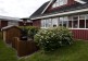 Wood house with patio and garden