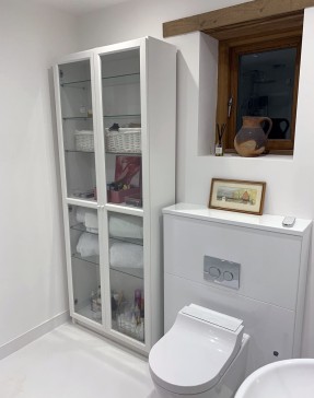 Accessibility: Three  entrances to house allow for those with mobility problems. The  ground floor has all facilities on one level (with only  a small 7.5. Cm  step onto  shower tray with  glass shower enclosure, non slip grip floor for elderly / or disabled  ) , the access to the house  itself is via the back door on west  facing - stone terrace  and  9 cm high,  wide deep stone steps to it and ample car parking adjacent.