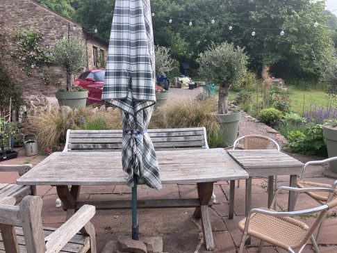 Internet and TV. Garden furniture gas BBQ, electric heater  and a  Fire pit  plus There is a padded comfortable swing seat in upper area of garden by 5 bar gate   looking southeast. Annex is adjacent to double garage for secure  storage for bikes and sports equipment. The well stocked garden, gently sloping away from the house, with a second large unfenced natural garden  pond  gives privacy with views of the hills and Wye valley beyond Monmouth.