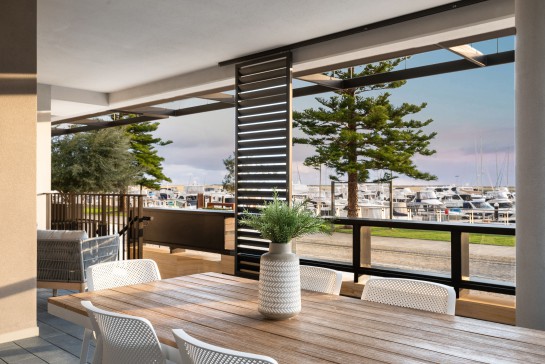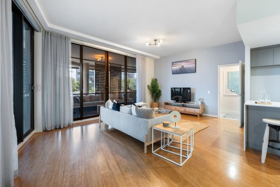 The apartment building was built in 2017, so it presents like new. It has two ensuite bathrooms, is airy and light and comes with Smeg induction hotplate and stove. Two bedrooms and the lounge-dining area feature air conditioning. We have a two-car parking space in the secure undercroft car park, and a Subaru Forester would be included in the swap if a car is also included at the other end. We have an enormous 70sqm balcony which enjoys lovely views over the marina which is only 40m away. Aside from the second bedroom, views of the marina are front and centre in all other rooms, often highlighted with superb sunset. It`s a very friendly neighborhood, busy during the day but whisper quiet of a nighttime. The floor-to-ceiling windows come with electric blinds but the tinting on the glass and curtains mean passers-by can`t see into the apartment. It has strong Wi-Fi connection allowing Netflix and other programs to be shown through the net.